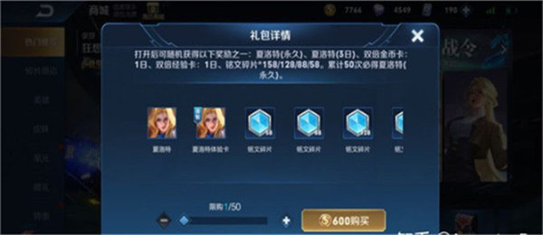 活动期间,登录游戏即可获得夏洛特祝福宝箱*1,打开必得必得英雄碎片*1、浓情玫瑰*1、钻石*15,有几率获得夏洛特信物(信物在新赛季版本更新后可以使用,直接获得永久英雄夏洛特)。