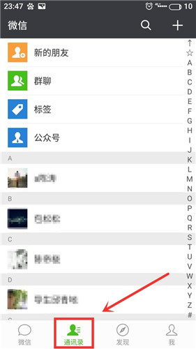 2.在微信页面中“通讯录”一栏中选择所要发红包的对象;