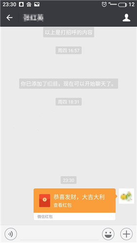 7.然后在聊天栏中便可以看到自己所发的红包了,接下来就等待好友领取红包吧。