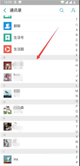 3、接下来在好友列表中,选择需要发送红包的好友,点击进入。