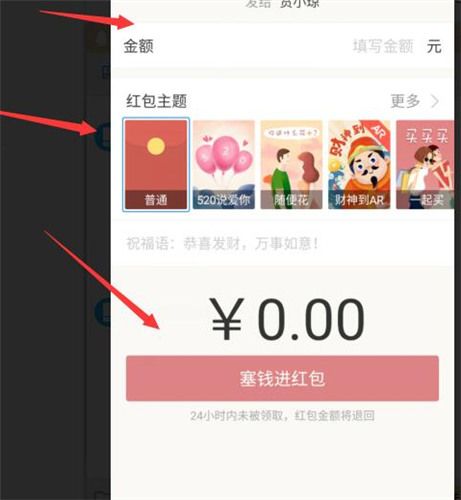 5、接下来在红包页面中,输入红包金额,选择红包主题,点击“塞钱进红包”。
